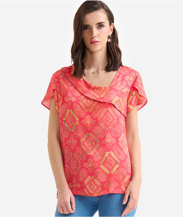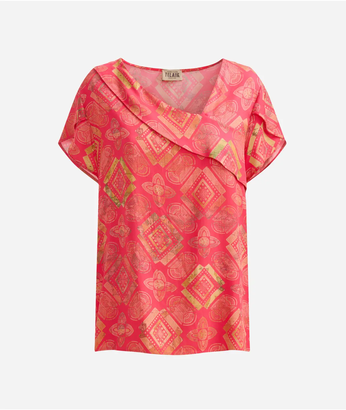 La stampa Geo Pizzo offre la visione di questa Collezione alla mappa del brand, sovrapponendovi delicati motivi geometrici che richiamano l’arte spagnola del merletto: un design che regala carattere alla blusa in raso di viscosa, resa distintiva dalla manica a tulipano e dal volant sul fronte. Fresca e morbida sulla pelle, è perfetta da abbinare ai jeans di Collezione.